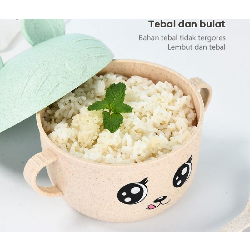 Kelebihan - Kelebihan membeli Mangkok Makan Jerami Mangkok Gelas Jerami Mangkok Makan Anak wheat straw bowl perlengkapan makan bayi anak set sendok di Toko ini