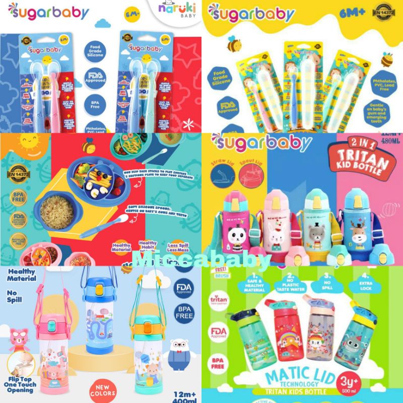 Harga SUGAR BABY Tritan Kid Bottle | Tritan Kid 2in1 | Silicone Spoon | Feeding Set Botol Minum